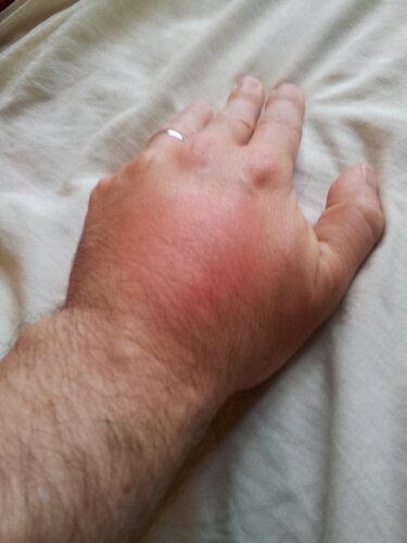 On Sunday I forgot to put on insect repellent until lunch time and paid for it by being bitten twice on the arm. Normally I don’t react badly to bites or stings but this time it’s different.
