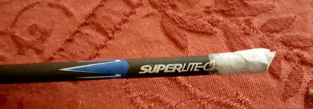 Carbon Arrow Previous Next Broken Carbon arrow wrapped in tape Share this:Tweet Click to print (Opens in new window) Print Click to email a link to a friend (Opens in new window) Email Share on Tumblr Click to share on Reddit (Opens in new window) Reddit Like Loading...