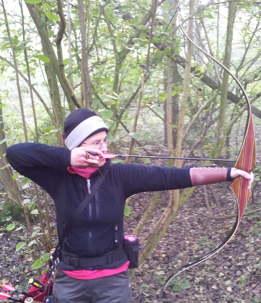 As the archer progress good alloy arrows are the Easton x7 (think they are 1614 going from memory) which Sharon uses (recurve 38lbs and 26″, yes 26″ not 28″) and work well for the field archery we do. I’ve got some XX75 that are pretty robust too, but I tend to shoot wooden arrows more.