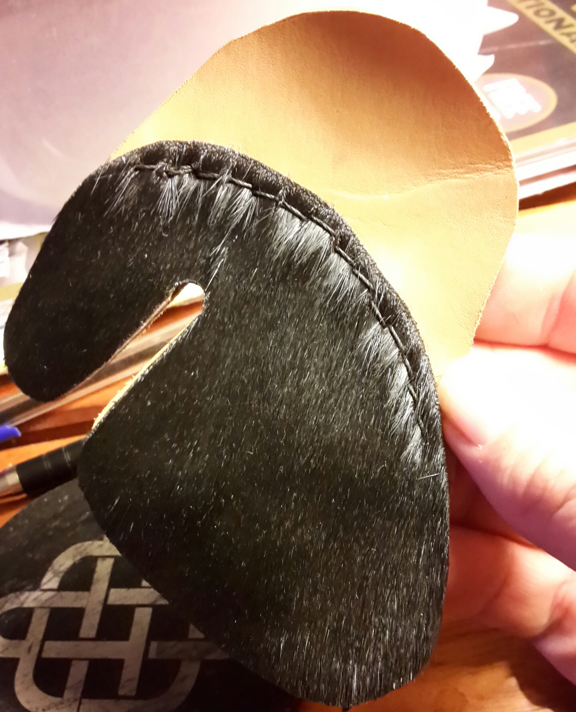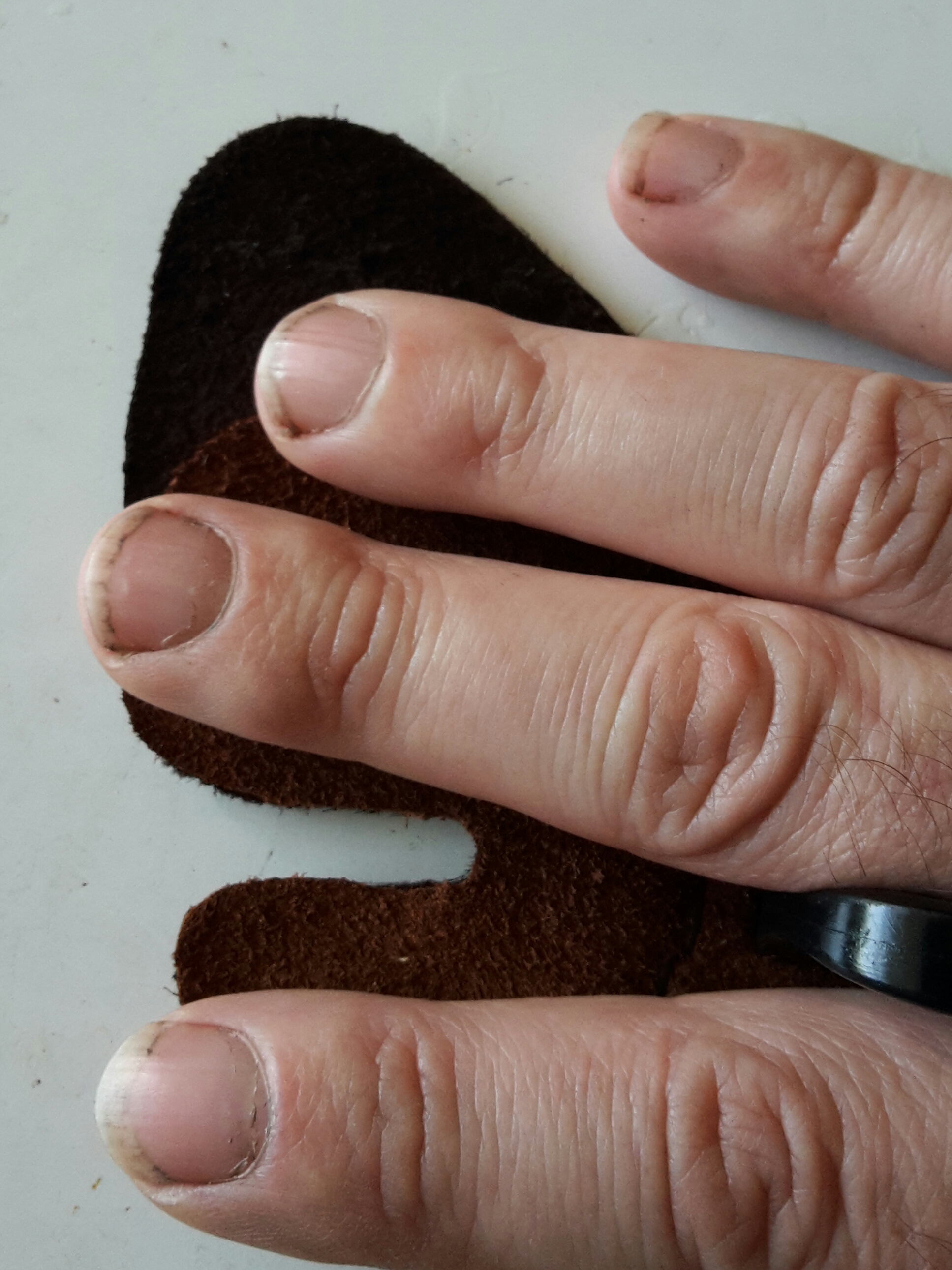 Mounting the finger spacer was pretty easy. I used my old tab as a guide initially marking the reverse side of the leather where the tab spacer would be.