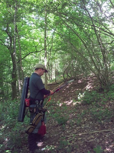 We started on peg 31 – a long uphill wolf and yes it was as long as it looked. The group was Sharon, myself and Dylan who we had shot with previously (about 5 years ago), though he was now shooting bare bow.