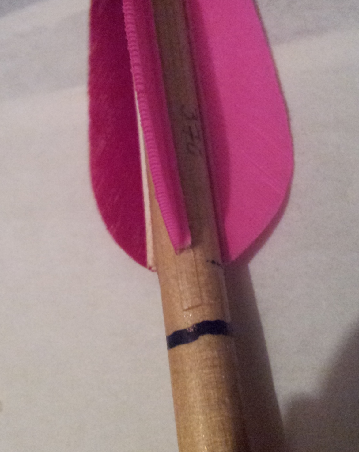Quick tip. Ensure the shaft is dry and free from any dust which would cause poor adhesion. I don’t oil or varnish the shafts prior to fletching them.