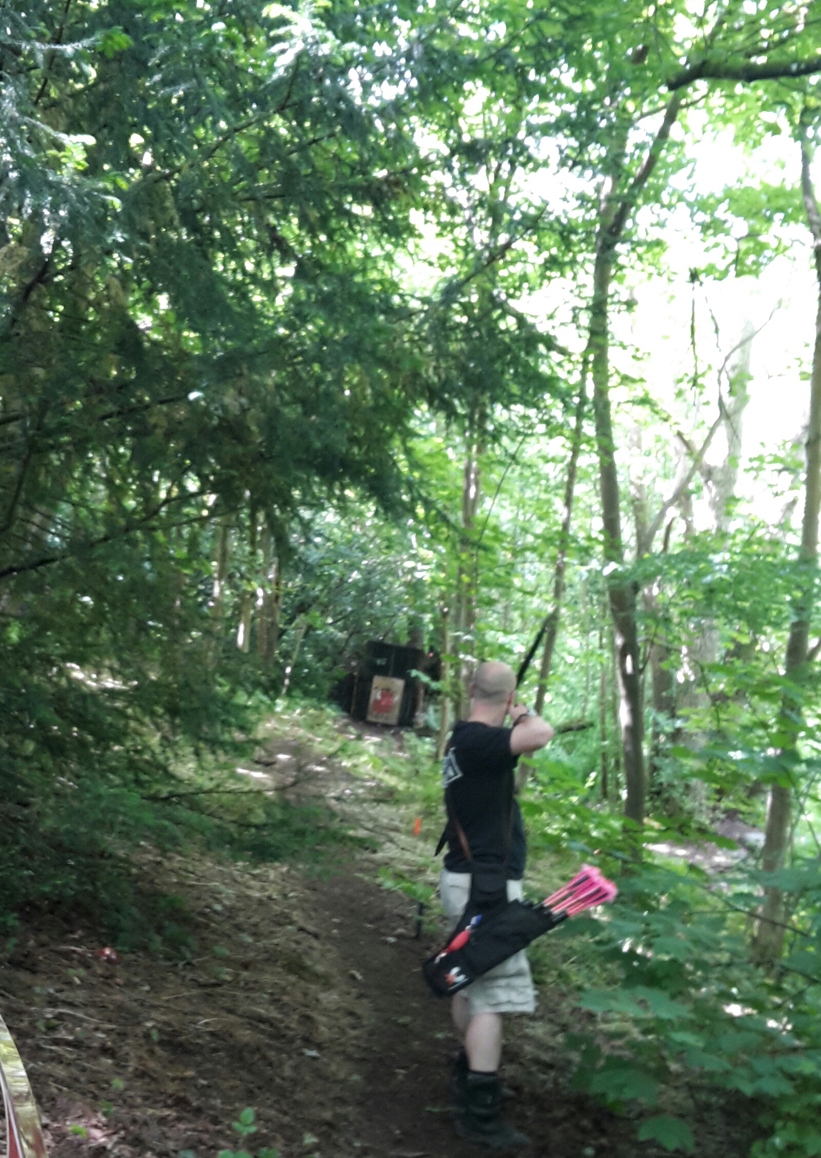 Saturday’s course would prove to be the flatter of the two courses. With the overcast and damp weather it made the woodland quite dark at times making some of the paper targets very hard to make out. I think this problem was compounded by the use of some new target faces being used this year. Some of these new faces were quite dark, especially the pigeon and goose, which the whole group struggled to first identify and then score well on.
